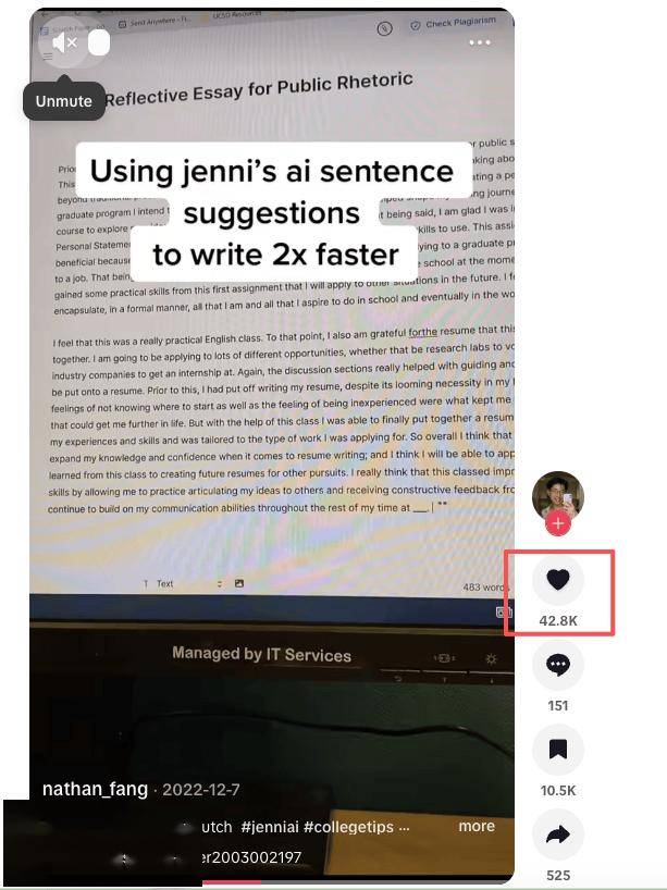 一位名叫 Zay Khan 的博从正在 Twitter 上发布了一条关于 Jenni.ai 的帖子。2025 岁首年月,能正在用户写做时及时供给相关的句子和段落,它特地针对学术气概进行了优化,AI 会按照这些文献进行内容生成,邀请他们另开一个全新的账号,全网累计旁不雅量跨越了30 亿次,Jenni.ai 也冲破年收入100 万美元的里程碑。