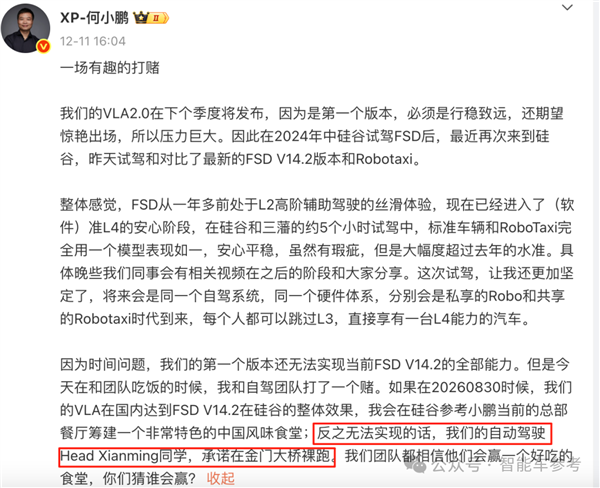 何小鹏微博贴出的图片中,刘先明团队的成了本年小鹏科技日从推的第二代VLA,